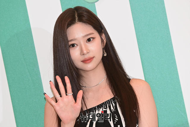 아이즈원 김민주가 13일 오후 서울 여의도 더 현대 서울에서 열린 프라다 트로피코 익스클루시브 팝업스토어 오픈 기념 행사에서 포즈를 취하고 있다.