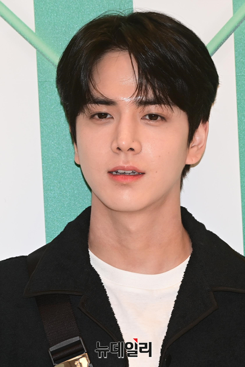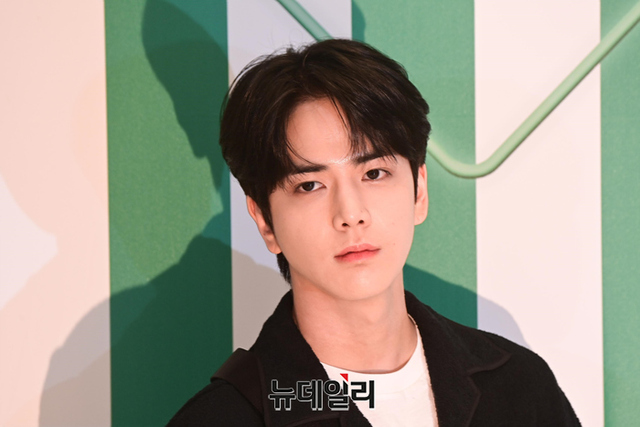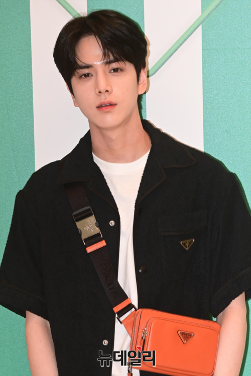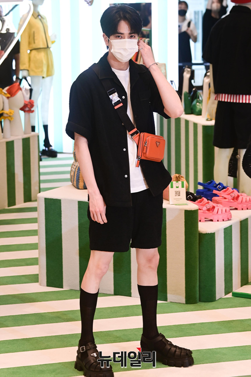 아이돌그룹 더보이즈 멤버 영훈이 13일 오후 서울 여의도 더 현대 서울에서 열린 프라다 트로피코 익스클루시브 팝업스토어 오픈 기념 행사에서 포즈를 취하고 있다.