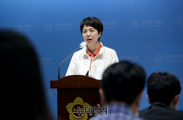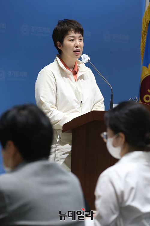 김은혜 국민의힘 경기지사 후보가 13일 오전 경기 수원시 경기도의회 브리핑룸에서 열린 '경기도 부동산'과 '초등생 아침 무상급식' 공약 발표에서 발언을 하고 있다. (사진=김은혜 캠프)
