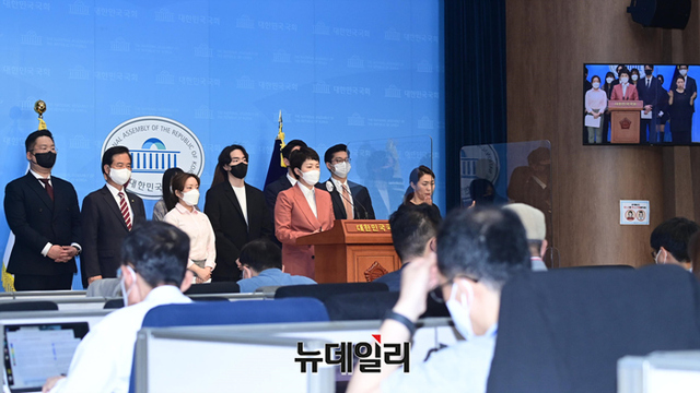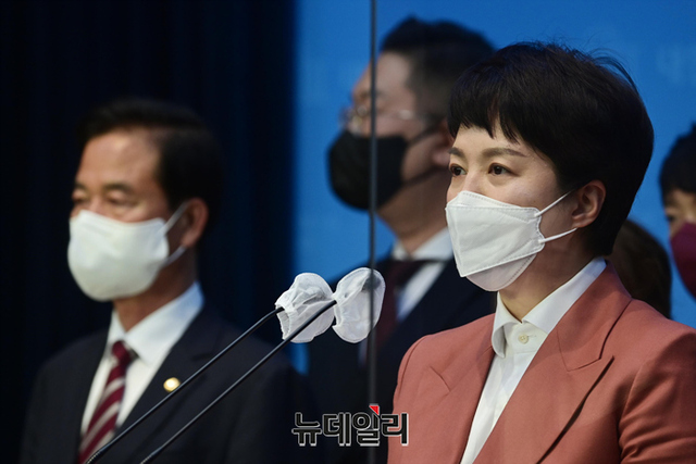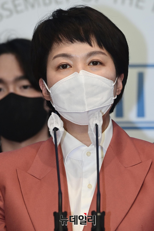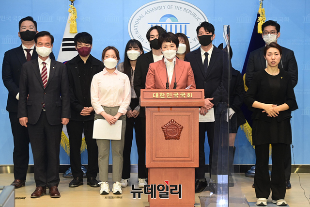김은혜 국민의힘 경기지사 후보가 16일 오후 국회 소통관에서 열린 청년 공약 발표 기자회견에서 발언을 하고 있다.
