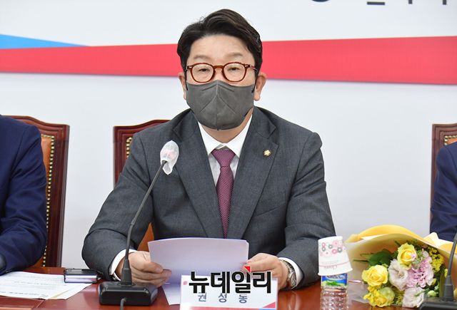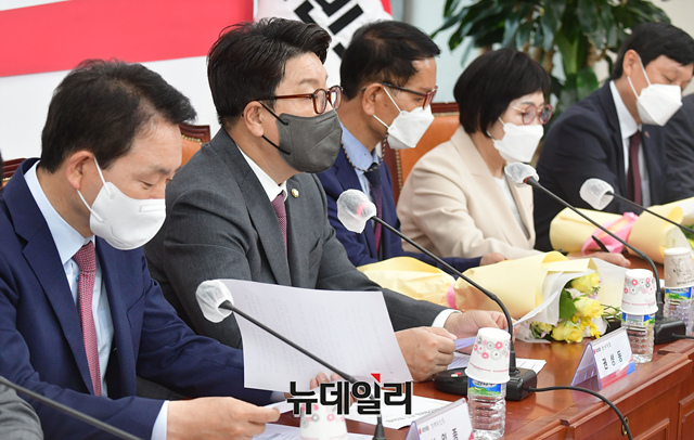 권성동 국민의힘 원내대표가 16일 오후 국회에서 5.18 민주화운동 부상자회, 5.18 민주유공자 유족회, 5.18 민주화운동 공로자회, 5.18 기념재단 등 5.18 단체 초청 간담회에서 모두발언을 하고 있다.