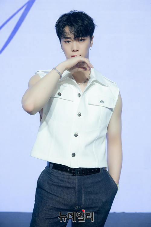 아스트로 문빈이 16일 오후 온라인으로 열린 정규 3집 'Drive to the Starry Road' 발매기념 쇼케이스에서 포토타임을 갖고 있다.