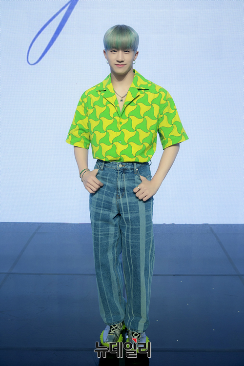 아스트로 진진이 16일 오후 온라인으로 열린 정규 3집 'Drive to the Starry Road' 발매기념 쇼케이스에서 포토타임을 갖고 있다.