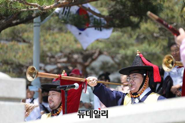 [포토] 청와대 대정원서 보는 국립국악원 대취타 공연
