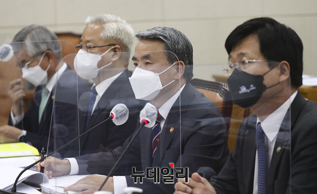 이종섭 국방부장관이 17일 국회에서 열린 국방위 전체회의에서 의원들의 질의에 답변하고 있다. (사진=공동취재단)