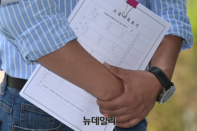 '화교간첩 사건'으로 알려진 전 서울시 공무원 유우성 씨가 17일 오후 경기 정부과천청사 공수처에서 고소인 조사에 앞서 입장을 밝히고 있다. (경기 과천=강민석 기자)
