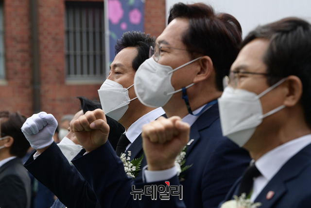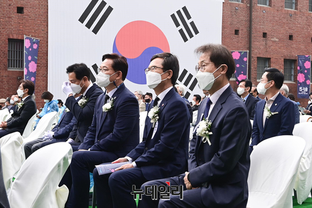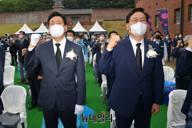 [포토] 5.18 서울기념식서 만난 오세훈·송영길 서울시장 후보
