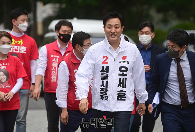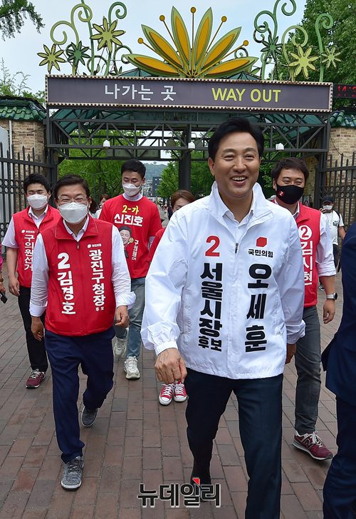 [포토] 서울어린이대공원 찾은 오세훈 서울시장 후보