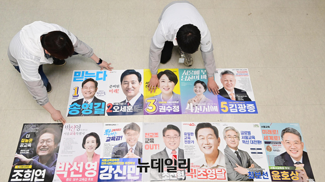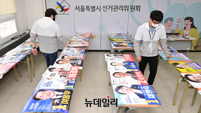 제8회 전국동시지방선거 공식 선거운동을 하루 앞두고 있는 18일 오후 서울 종로구 서울시선거관리위원회에서 직원들이 접수된 후보들의 벽보를 점검하고 있다.공식 선거운동 기간은 19일부터 31일까지다. 사전투표는 27, 28일 실시된다. 본투표는 6월 1일이다.선거 당일에는 지자체장과 지방의회 의원, 교육감 등을 선출하는 지방선거와 국회의원보궐선거가 동시에 실시된다.코로나19 격리자는 사전투표 마지막 날인 28일 오후 6시 30분부터 8시까지 투표 가능하다. 선거당일은 오후 6시 30분부터 7시 30분까지 투표를 할 수 있다.
