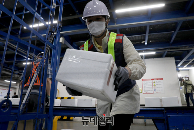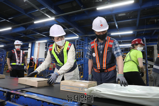 [포토] 첫 일정으로 택배분류 작업하는 김은혜 후보