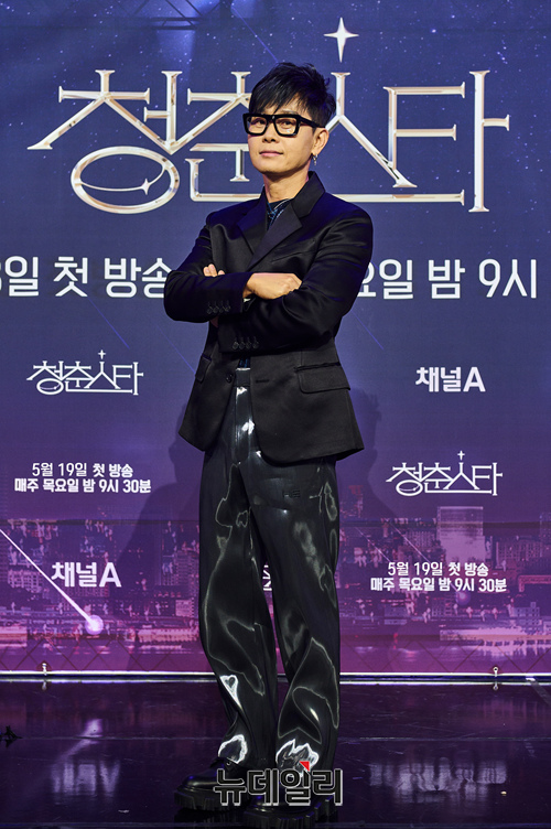 가수 이승환이 19일 온라인으로 진행된 채널A 새 예능프로그램 '청춘스타' 제작발표회에 참석해 포토타임을 갖고 있다.