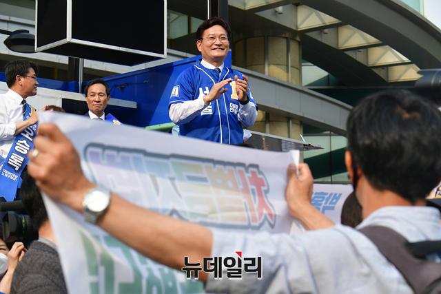 [포토] 송영길 유세장에 난입한 차별금지법제정연대 회원들