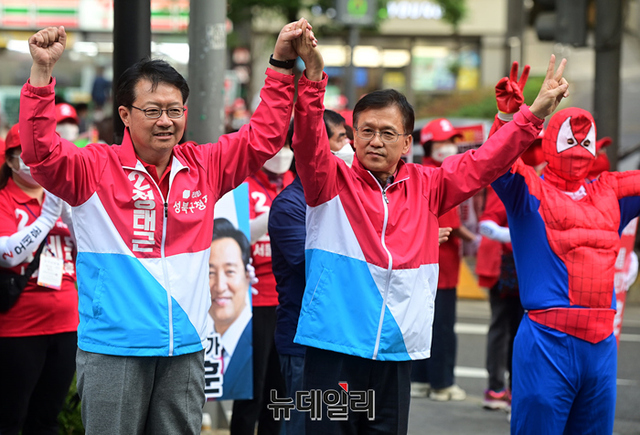 [포토] 정태근 성북구청장 후보 지원유세나선 한상학 당협위원장