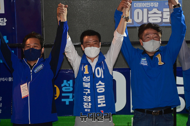 [포토] 이승로 성북구청장 후보 지원유세 나선 김영배 의원