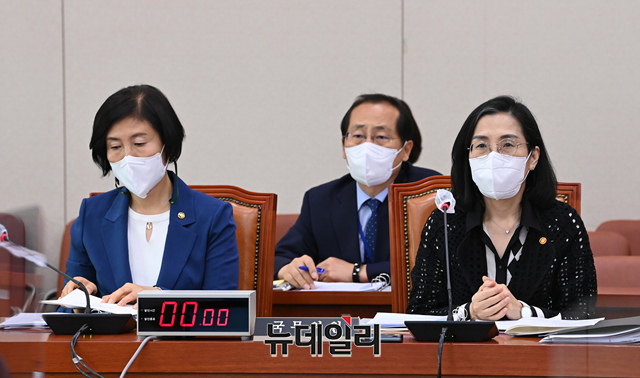김현숙 여성가족부 장관이 20일 국회에서 열린 여성가족위원회 전체회의에서 의원들의 질문에 답하고 있다. (사진=공동취재단)