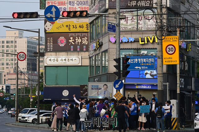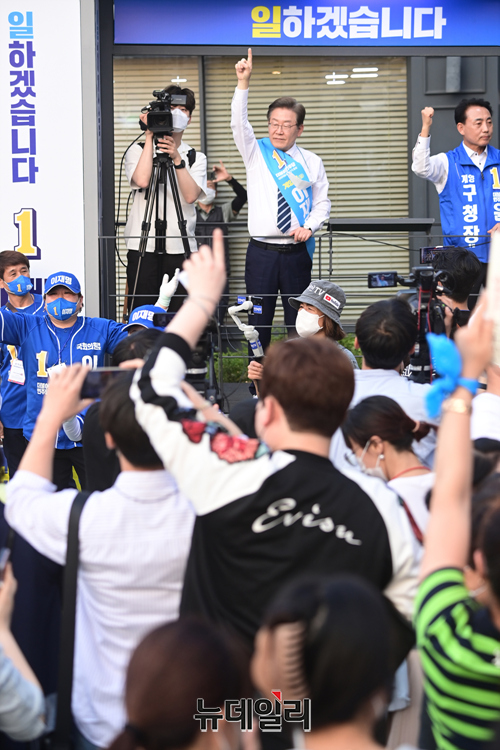 [포토] 인천 계산로서 지지호소하는 이재명 후보