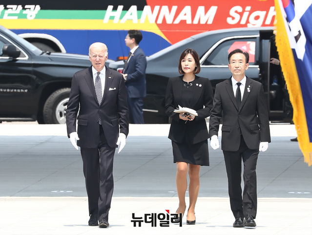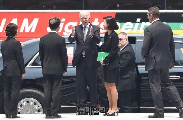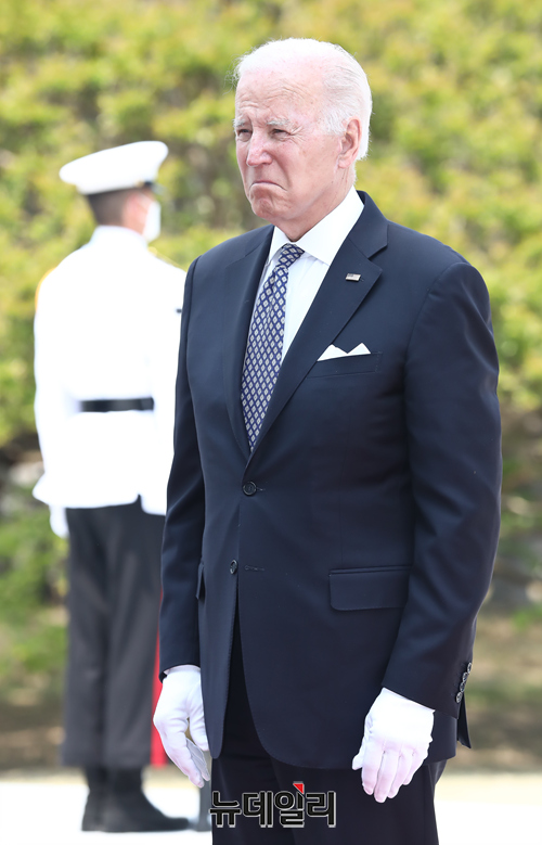 조 바이든 미국 대통령이 21일 오후 서울 동작구 국립서울현충원을 찾아 참배하기 위해 이동하고 있다. 이후 바이든 대통령은 용산 대통령실로 이동해 정상회담을 가질 예정이다. (사진=공동취재단)