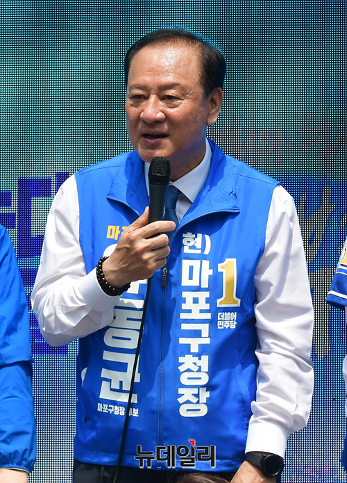 [포토] 지지호소 하는 유동균 민주당 마포구청장 후보