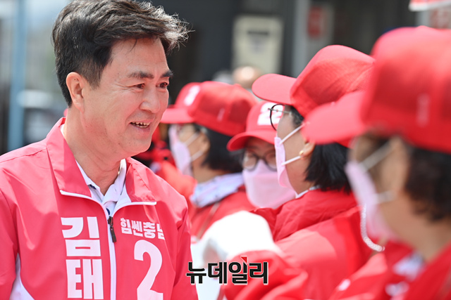 김태흠 국민의힘 충남도지사 후보가 23일 오후 충남 보령 중앙시장 인근에서 열린 보령시 지방선거 후보자 합동 유세에 참석해 지지를 호소하고 있다. (사진=김태흠 캠프)