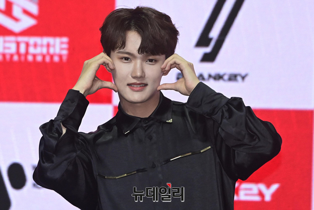 아이돌그룹 블랭키 멤버 동혁이 24일 오후 서울 광진구 예스24 라이브홀에서 열린 첫 번째 미니앨범 '키원 컨피던스 떰즈업(K2Y I : CONFIDENCE Thumbs Up)' 데뷔 쇼케이스에서 포즈를 취하고 있다.그룹명 '블랭키'는 빈칸·여백(BLANK)과 열쇠·실마리(KEY)의 합성어로 '텅 빈 공간을 여는 열쇠'라는 뜻으로 한국, 일본, 중국 멤버로 구성된 9인조 남성그룹이다.앨범과 동명의 타이틀곡 '떰즈업'을 포함해 '터치' '별자리' 등을 포함해 총 5곡이 수록됐다. 음원은 24일 오후 6시에 공개.