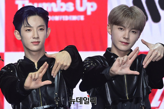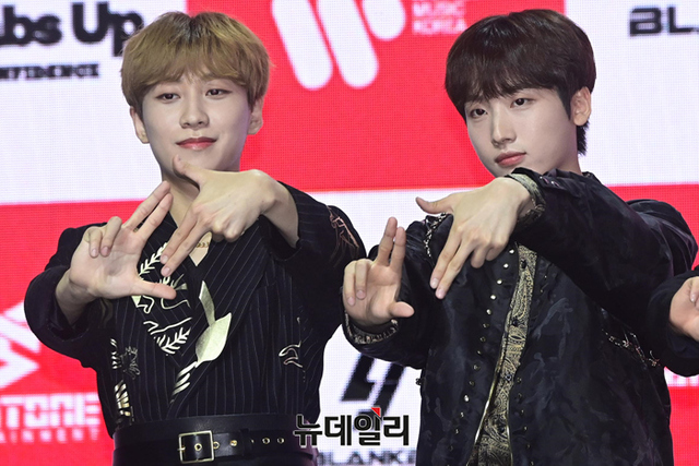 아이돌그룹 블랭키(U, DK, 소담, 루이, 영빈, 시우, 성준, 마이키, 동혁)가 24일 오후 서울 광진구 예스24 라이브홀에서 열린 첫 번째 미니앨범 '키원 컨피던스 떰즈업(K2Y I : CONFIDENCE Thumbs Up)' 데뷔 쇼케이스에서 포즈를 취하고 있다.그룹명 '블랭키'는 빈칸·여백(BLANK)과 열쇠·실마리(KEY)의 합성어로 '텅 빈 공간을 여는 열쇠'라는 뜻으로 한국, 일본, 중국 멤버로 구성된 9인조 남성그룹이다.앨범과 동명의 타이틀곡 '떰즈업'을 포함해 '터치' '별자리' 등을 포함해 총 5곡이 수록됐다. 음원은 24일 오후 6시에 공개.