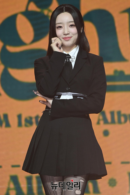 걸그룹 라잇썸 멤버 히나가 24일 오후 서울 용산구 블루스퀘어 마스터카드홀에서 열린 첫 번째 미니앨범 '인투더라잇(Into The Light)' 미디어 쇼케이스에서 포즈를 취하고 있다.