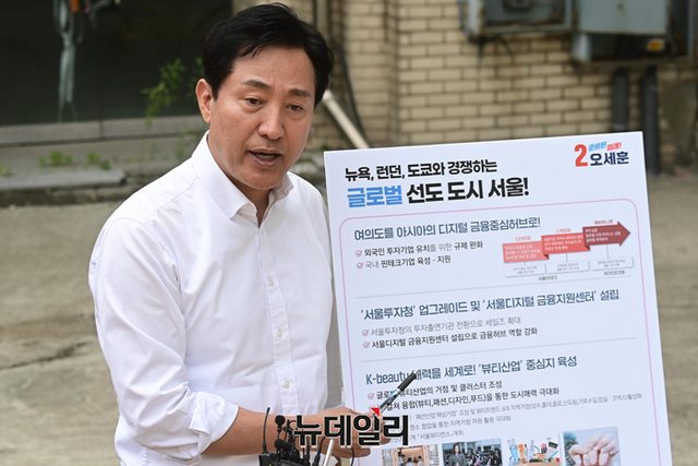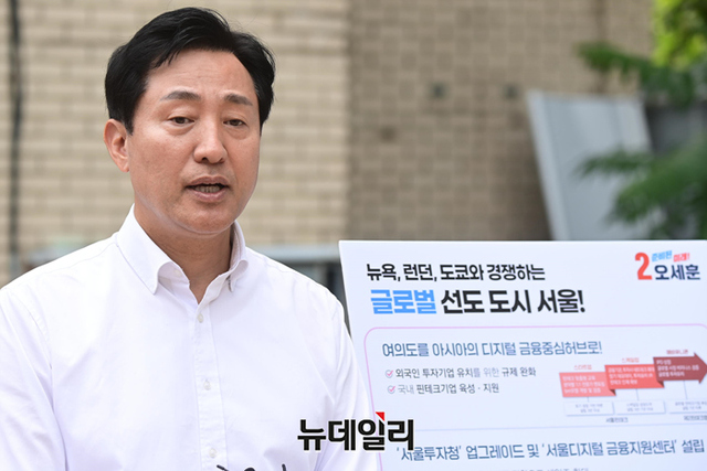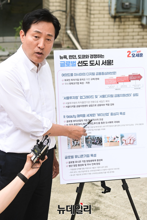 오 후보는 "서울을 아시아 금융중심도시로 육성하겠다"며 "먼저 외국인 투자기업 유치를 위한 규제 완화와 함께 유망 핀테크 스타트업 사업화를 위한 규제 혁신을 도모하겠다"고 말했다.