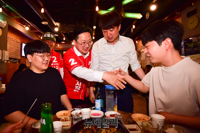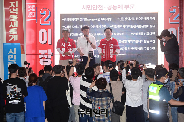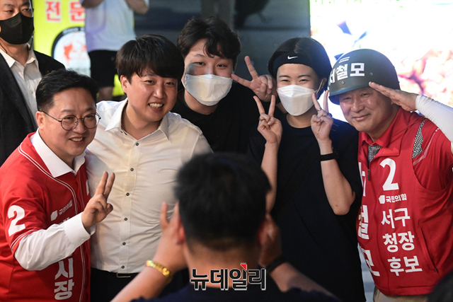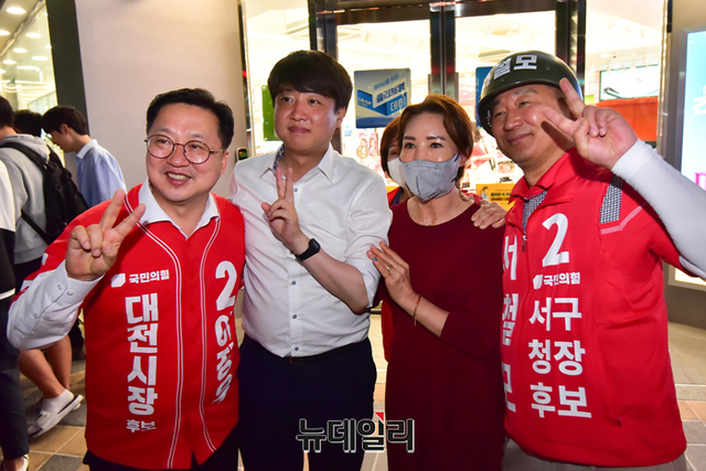 [포토] 일주일 남은 지방선거...지지호소 향하는 이준석·이장우·서철모