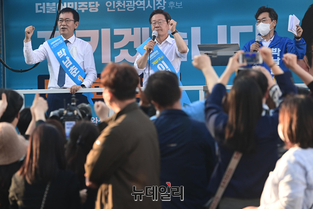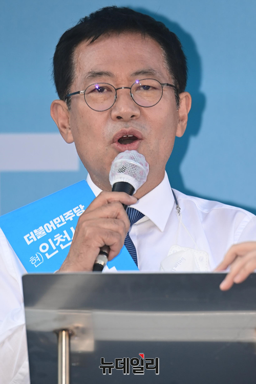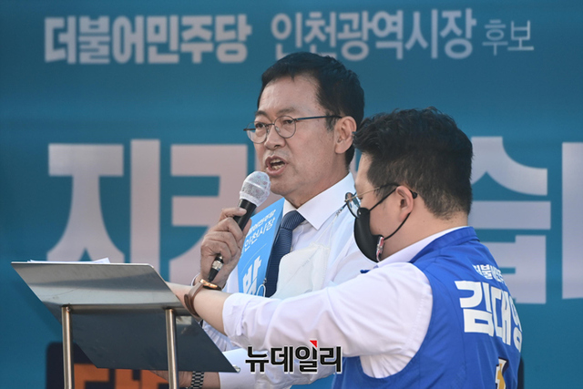 박남춘 더불어민주당 인천시장 후보가 26일 오후 인천 부평구 광장로에서 열린 유세에서 지지호소를 하고 있다. (인천=강민석 기자)