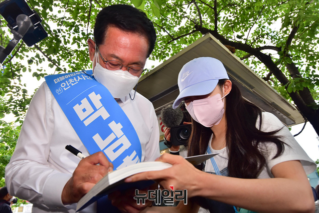 박남춘 더불어민주당 인천시장 후보가 26일 오후 인천 부평구 광장로에서 열린 유세에서 지지호소를 하고 있다. (인천=강민석 기자)
