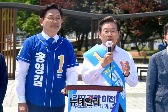 [포토] 수도권 서부 대개발 공약 발표하는 이재명 후보