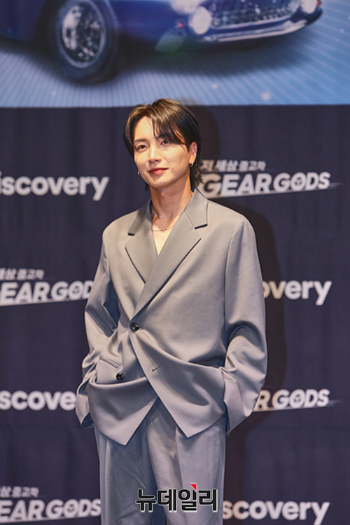 가수 이특이 27일 오후 서울 중구 앰버서더 서울 풀만 호텔에서 진행된 디스커버리 채널 신규 오리지널 예능 '저 세상 중고차 - 기어갓 (연출 하정석)' 제작발표회에서 포즈를 취하고 있다.