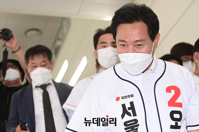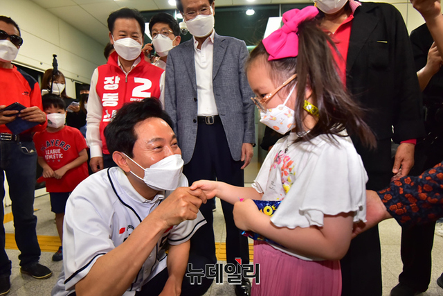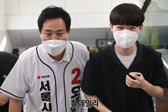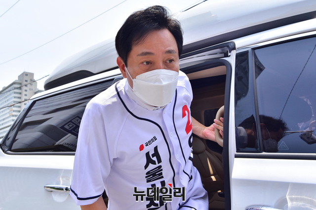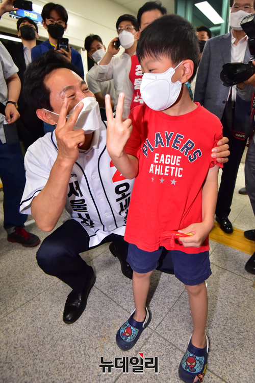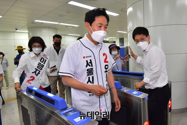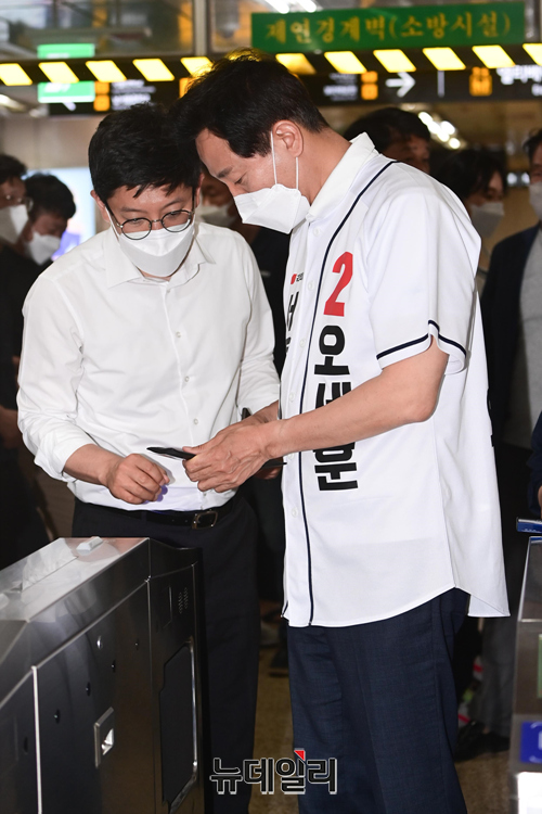 [포토] 개통된 신림선, 시민들과 대화 나누는 오세훈 후보