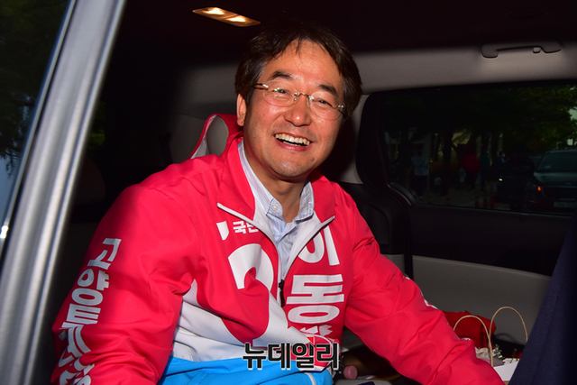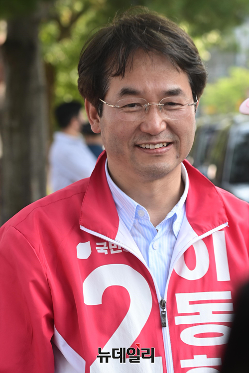 이동환 국민의힘 고양시장 후보가 28일 오후 경기 고양시 노래하는분수대에서 열린 김은혜 경기지사 후보의 유세에서 지지호소를 하고 있다. (경기 고양=강민석 기자)