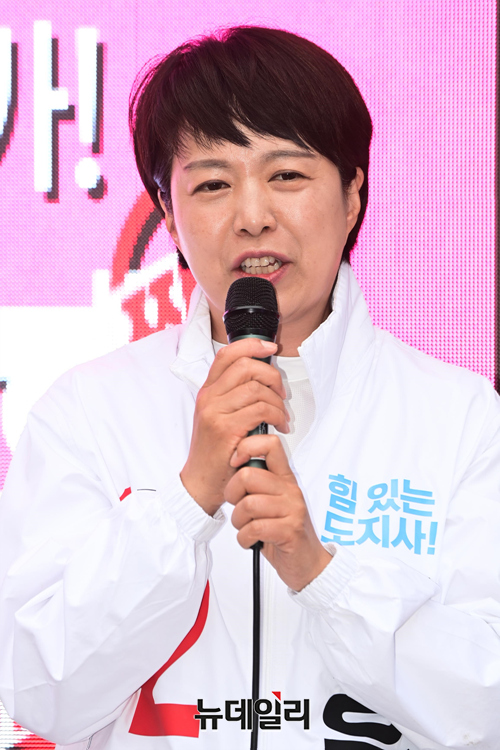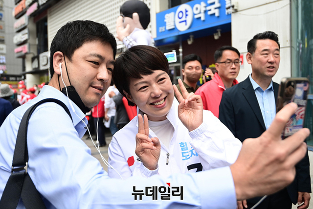 [포토] 지방선거 D-2...강남역서 출근길 인사하는 김은혜 후보