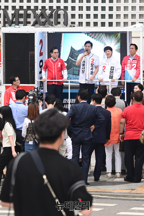 [포토] 지방선거 이틀 앞둔 평일...출근길 인사하는 오세훈 후보