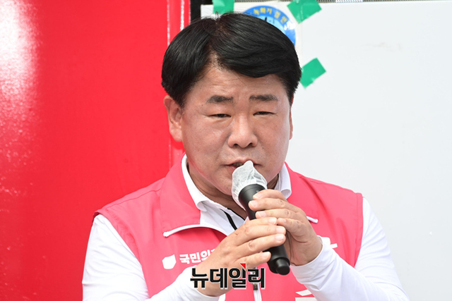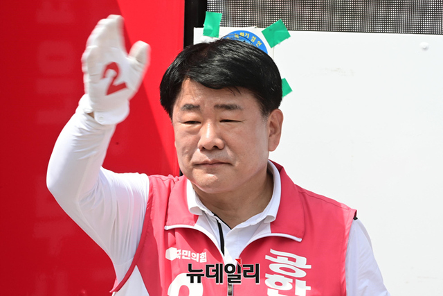 공한수 국민의힘 부산서구청장 후보가 6·1 지방선거를 앞둔 30일 오후 부산 서구 동대신동역에서 열린 합동유세에서 지지호소를 하고 있다.