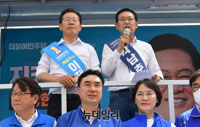 [포토] 이재명 대동하고 모래내시장 찾은 박남춘
