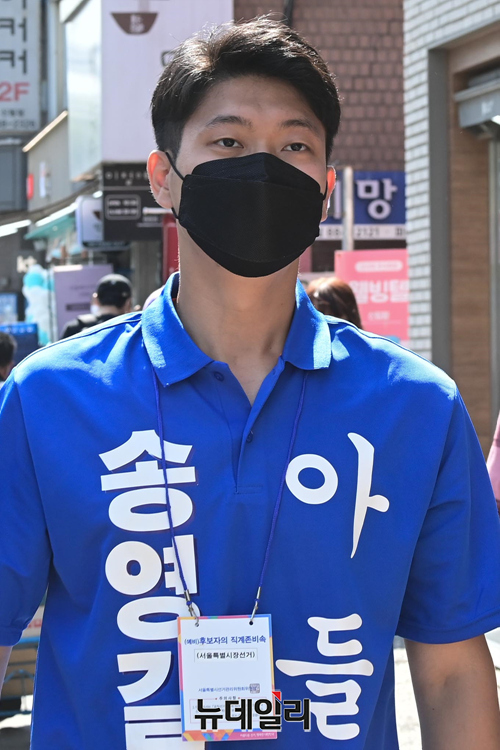 [포토] 송영길 후보 유세 지원 나선 아들 주환 씨