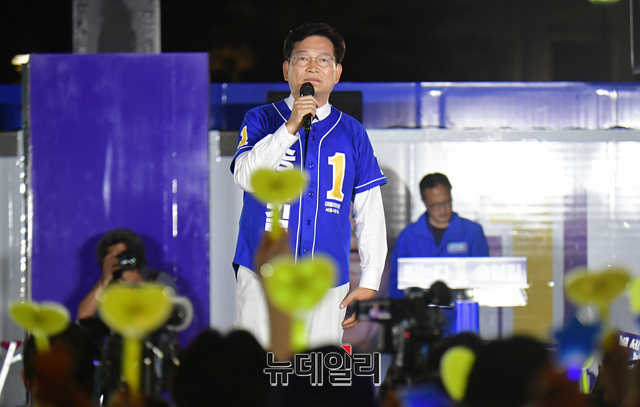 [포토] 마지막 집중유세에서 지지호소 하는 송영길 후보