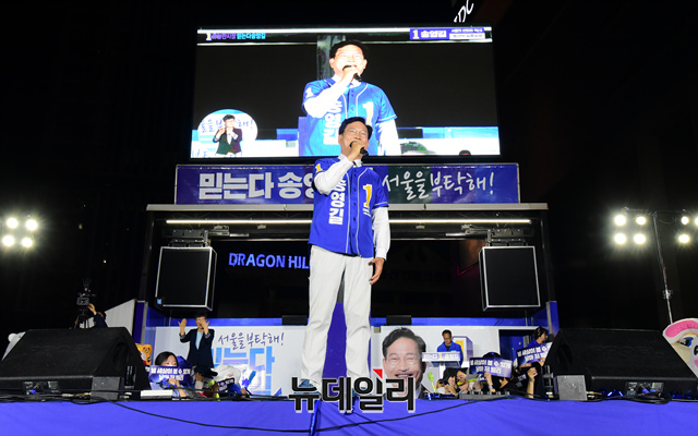 [포토] 용산역 광장서 지지호소 하는 송영길 후보