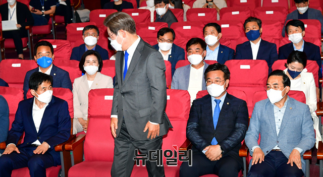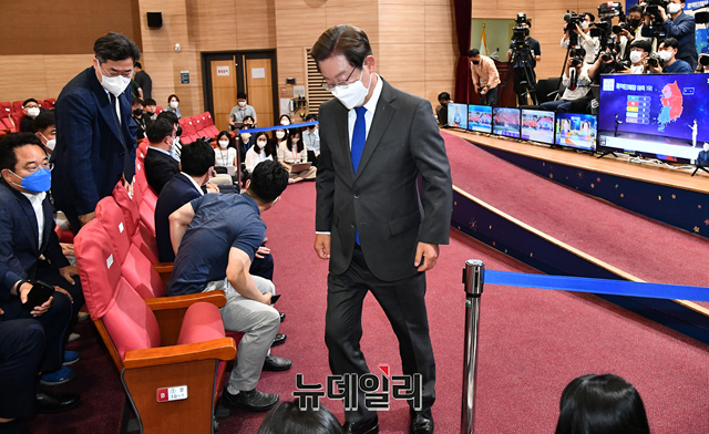 [포토] 상황실 박차고 떠나는 이재명 민주당 총괄선대위원장