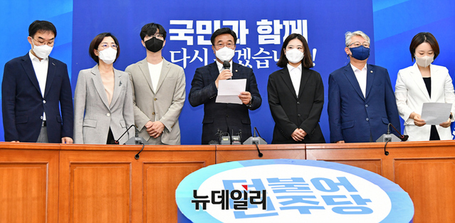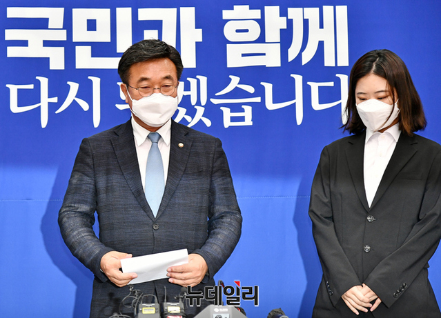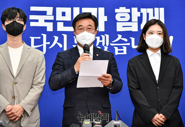 윤호중 더불어민주당 공동비상대책위원장이 2일 오전 국회에서 6.1 지방선거 패배와 관련해 총사퇴 입장을 밝히고 있다. (사진=공동취재단)