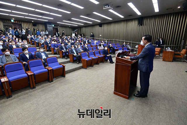 박홍근 더불어민주당 대표 직무대행 겸 원내대표가 3일 국회에서 열린 당무위원-국회의원 연석회의에서 인사말을 하고 있다.