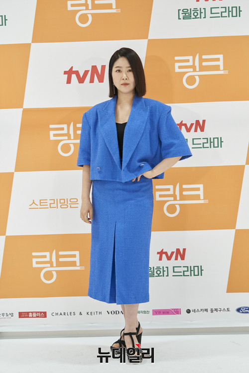 배우 김지영이 2일 오후 온라인으로 열린 tvN 월화드라마 '링크 : 먹고 사랑하라, 죽이게(연출 홍종찬)' 제작발표회에서 포즈를 취하고 있다.