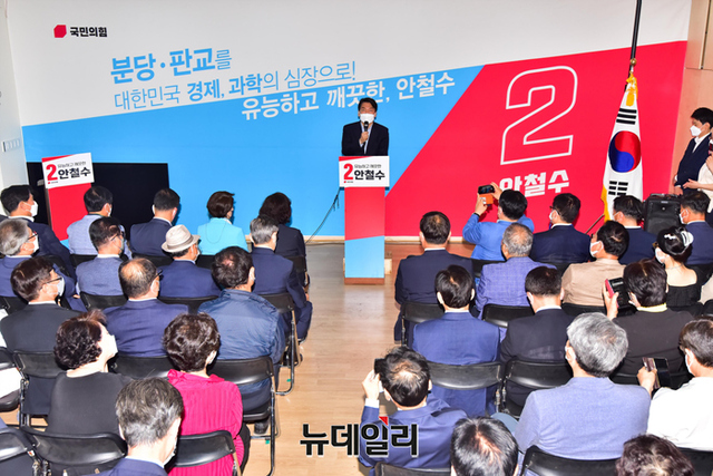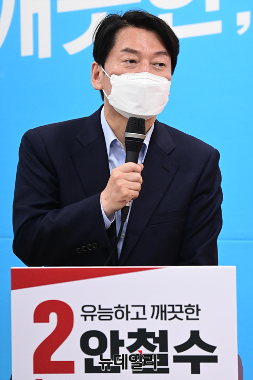 분당갑 국회의원 보궐선거에서 당선된 안철수 국민의힘 의원이 5일 오후 경기 성남시선거캠프에서 열린 해단식에서 발언을 하고 있다.