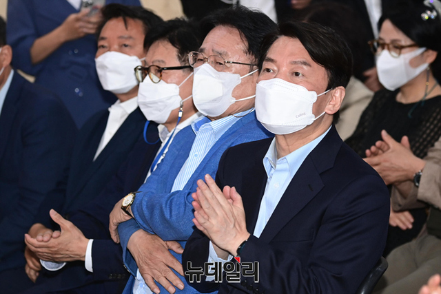 분당갑 국회의원 보궐선거에서 당선된 안철수 당선인이 5일 오후 경기 성남시 선거캠프에서 열린 해단식에서 캠프를 찾은 지지자들에게 인사를 하고 있다. (경기 성남=강민석 기자)