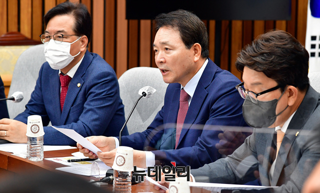 성일종 국민의힘 정책위의장이 7일 오전 국회에서 열린 원내대책회의에서 발언을 하고 있다.