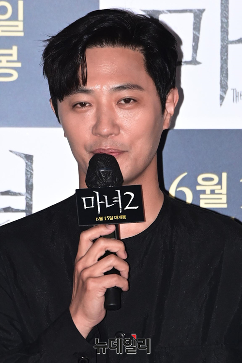 배우 진구가 7일 오후 서울 용산구 CGV 용산아이파크몰에서 열린 영화 '마녀2(감독 박훈정)' 언론배급시사회에 참석해 취재진의 질문에 답하고 있다.