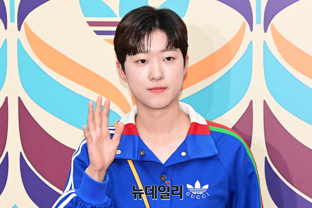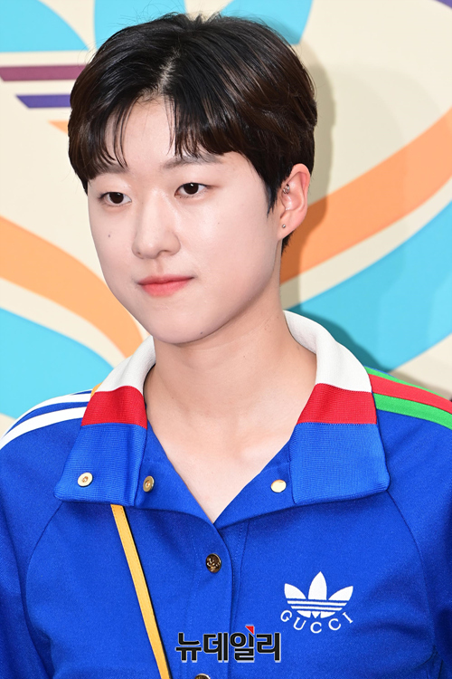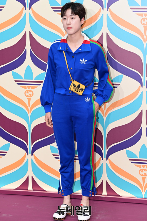 양궁 국가대표 안산이 7일 오후 서울 강남구 꼴라보하우스도산에서 열린 구찌X아디다스 런칭 기념 행사에서 포즈를 취하고 있다.